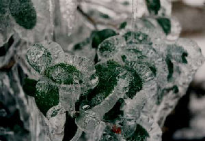 つばきの葉に氷