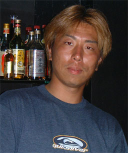 「めし食って、ビール飲んで、寝て、起きて、サーフィンして、 めし食って、ビール飲んで、寝て、起きて、サーフィンして、 めし食って、ビール飲んで、寝て、起きて、サーフィンして、 ....... ずっとそんな繰り返しができたら、ホント、いいっすねぇ!」 と、本気で言っている....... 好きな音楽は「ヒップホップ」、最近見た映画は「カクテル」、 大根踊りで有名な東京農大醸造課出身の憎めない男だ。 by muro