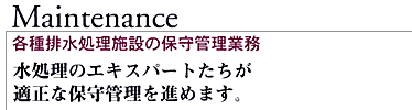 排水処理施設は、適正な運営管理と安全が絶対条件。しかし一口に維持管理といっても、施設規模の大小、処理方式などの特性と照らし合わせて行わなければならないため、水処理の専門知識や技術といったノウハウが必要となります。